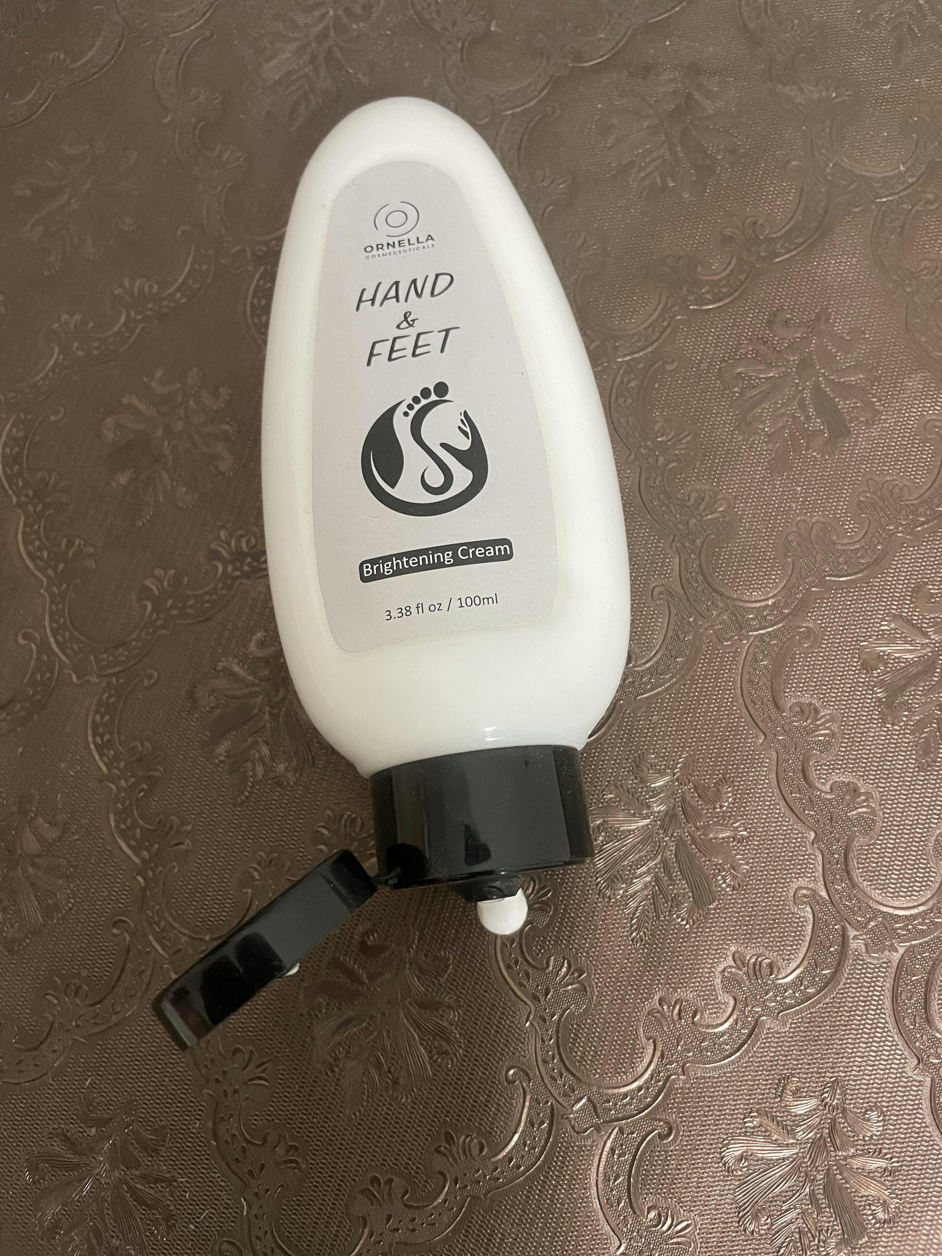 - Take a small amount of hand or foot cream and apply it to your skin.